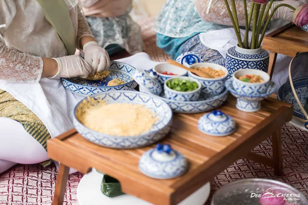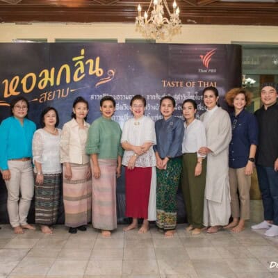 การจัดซุ้มอาหารในงานอีเวนท์นอกจากจะสร้างความแปลกใหม่ให้กับงานแล้ว ยังเพิ่มลูกเล่นและกิจกรรมเพื่อสร้างสีสันได้ อาทิ การสาธิตเมนูอาหาร ตกแต่งซุ้มอาหารหรือเลือกเมนูให้สอดคล้องกับธีมงาน เหมือนงานแถลงข่าวเปิดตัวรายการสารคดี “หอมกลิ่นสยาม”ทางช่องไทยพีบีเอส ซึ่งเป็นรายการวัฒนธรรมอาหารรูปแบบใหม่ โดยนำศาสตร์อาหารไทยต้นตำรับจากสำรับครัวไทยไปสู่ครัวโลก เพื่อนำเสนอคุณค่าของวัฒนธรรมอาหารไทยที่เป็นทั้งศาสตร์และศิลป์ รูปแบบการจัดเลี้ยงที่เลือกในงานแถลงข่าวครั้งนี้ คือ ซุ้มอาหาร โดยปรับเปลี่ยนให้เข้ากับธีมงานกลายเป็นซุ้มขนมไทย เพื่อให้ผู้เข้าร่วมงานได้เห็นถึงความประณีตในการปรุง และยังเปิดโอกาสให้ลองทำขนมไทยด้วยตัวเอง ได้แก่ ลาเตียงและข้าวตู ไม่ลืมที่จะตกแต่งดีเทลต่างๆ ให้ล้อไปกับธีมงาน ไม่ว่าจะเป็น ภาชนะใส่อาหาร อุปกรณ์ในการทำขนมไทย รวมไปถึงเครื่องแบบของพนักงานจัดเลี้ยง เพื่อให้บรรยากาศภายในงานและคอนเซปต์ของงานโดดเด่นเป็นที่จดจำยิ่งขึ้น