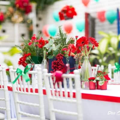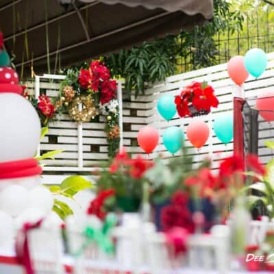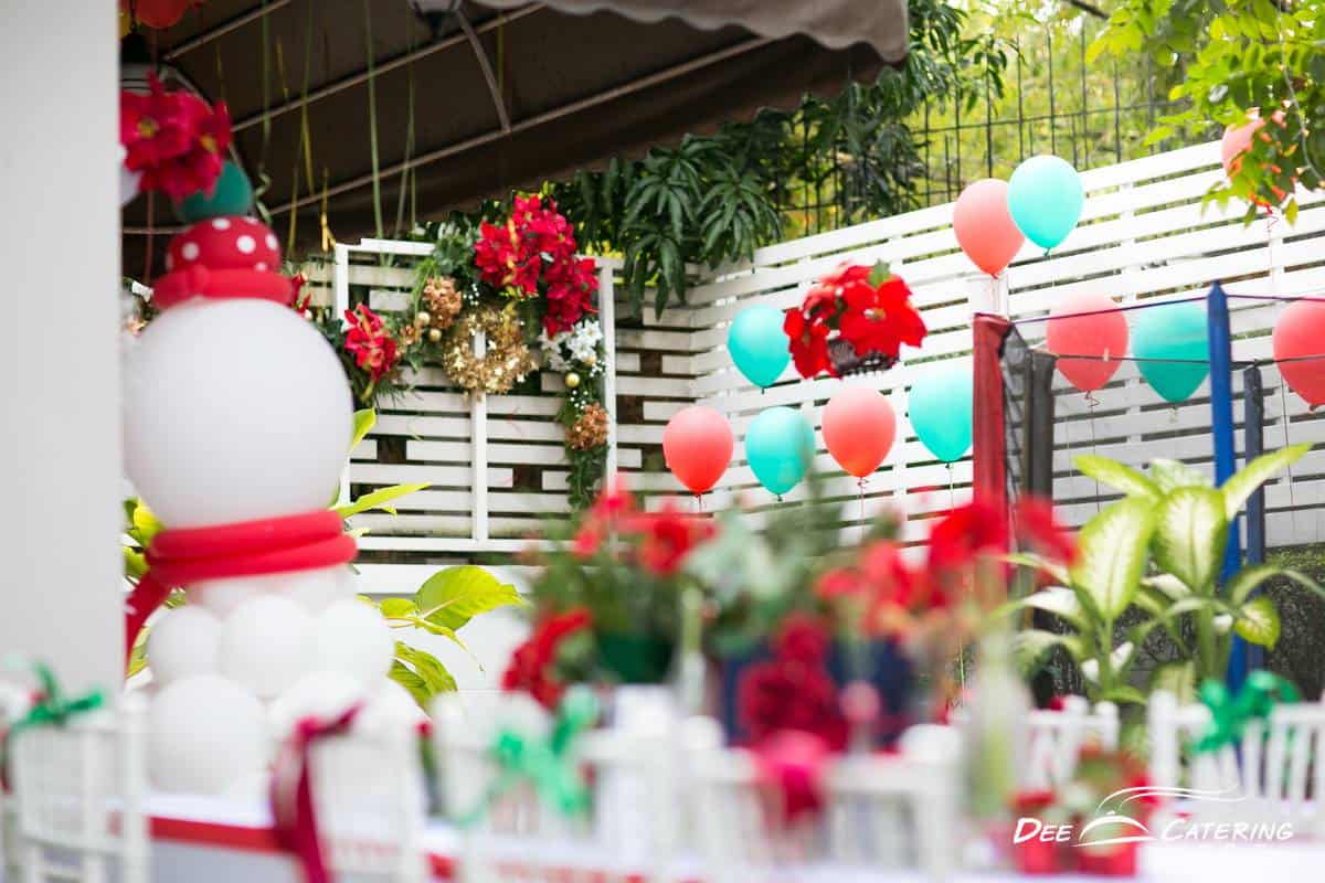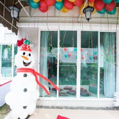 ไอเดียของงานเลี้ยงปีใหม่งานนี้ ไม่ได้จบแค่โต๊ะอาหาร ความจัดเต็มยังอยู่ที่ การเนรมิตบริเวณบ้าน ด้วยกลิ่นอายคริสต์มาส backdrop ต้นคริสมาสต์ กล่องของขวัญ ลูกโป่งเขียวแดงตกแต่งในมุมเด็ก ที่มีพี่ลูกโป่ง snowman ตัวขาวยืนคุม ทั้งแขกเด็กและแขกผู้ใหญ่ประทับใจไม่แพ้กัน ความสุข ความประทับใจ ในงานเลี้ยงที่บ้าน เกิดขึ้นได้ง่ายๆ ด้วยการพูดคุยความต้องการกับทีม Party Planner ที่คอยประสานงานกับทีมตกแต่ง ทีมโต๊ะเก้าอี้ และทีมงานจัดเลี้ยงนอกสถานที่ใจดี๊ ใจดี ช่วยเนรมิตบ้านให้เป็นที่จัดงานปาร์ตี้เก๋ๆ ได้ในพริบตา ^__^