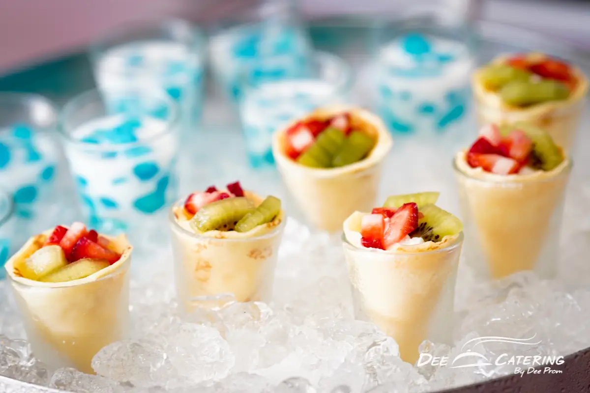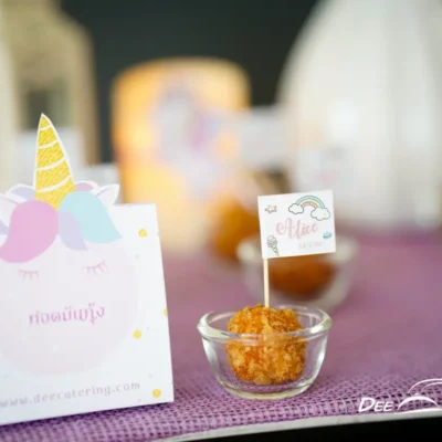 ดีเคเทอริ่ง ได้มีโอกาสมาร่วมอวยพร ด้วยการจัดงานวันเกิด Theme Unicorn ผ่านไลน์อาหารค็อกเทล ในส่วนของเมนูค็อกเทลที่เลือกมา เชฟแสนใจดีของดีเคเทอริ่งได้ปรับเปลี่ยน ดัดแปลงหน้าตาเมนูอาหารค็อกเทลให้เข้ากับธีมงานวันเกิด Unicorn มากที่สุด อาทิเช่น เมนูทับทิมกรอบ แบบเดิมๆที่เราเห็นกันทั่วๆไปจะมีสีแดงอมชมพู แต่งานวันเกิดครั้งนี้ค่อนข้างมีสีออกไปทางพาสเทล เชฟจึงปรับเปลี่ยนสีทับทิมกรอบให้เป็นสีฟ้าพาสเทลน่ารักๆ หรือ Cream Choux หลากสีสันทั้งม่วง เขียว ชมพู สีสันของอาหารค็อกเทลเชิญชวนให้เด็กๆมาหยิบชิมกันถ้วนหน้า ในส่วนของอาหารคาวสำหรับการจัดงานวันเกิดครั้งนี้ จะเป็นเมนูที่ทานได้ทั้งเด็กและผู้ใหญ่ อย่างซูชิโรล และสารพัดของทอด เช่น เบคอนพันไส้กรอก, ทอดมันกุ้ง