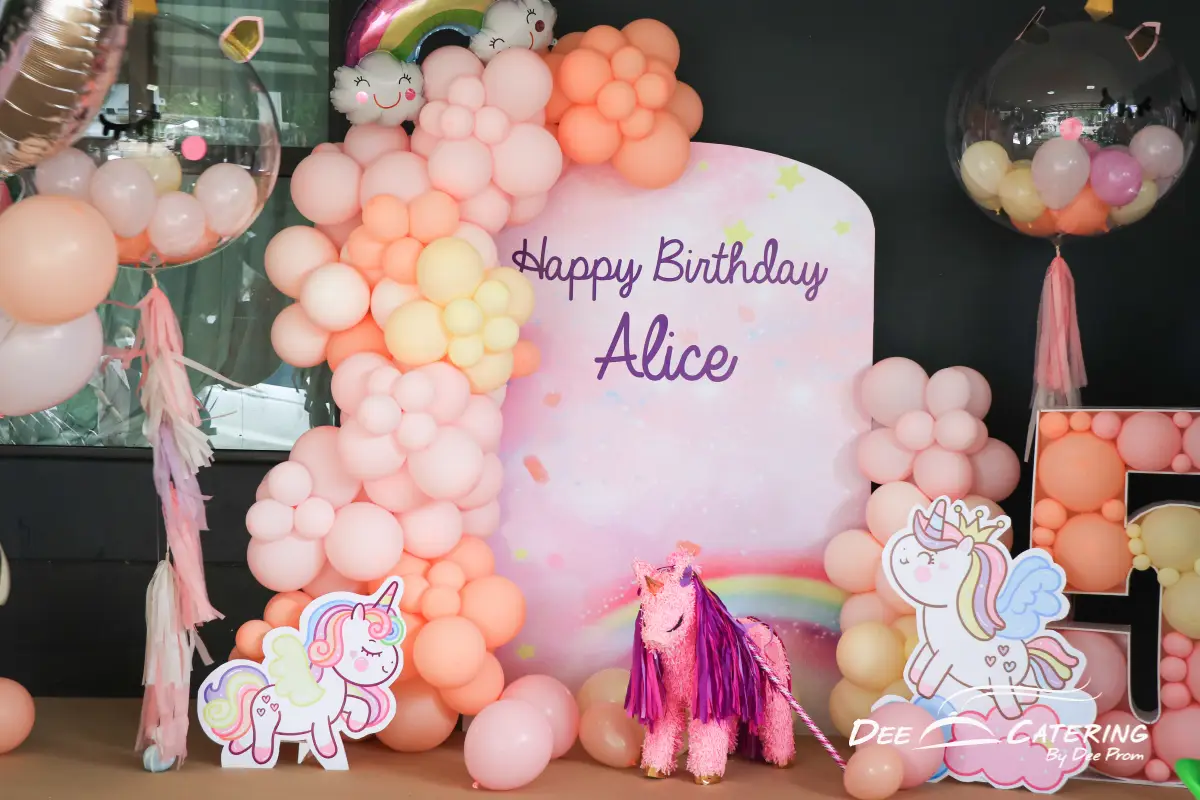 จัดงานปาร์ตี้วันเกิดให้ลูกด้วย Theme Unicorn สุดแสนน่ารัก colorful ที่หมู่บ้านเศรษฐสิริ ด้วยเมนูอาหารจัดเลี้ยงแบบค็อกเทล ที่คุณพ่อคุณแม่ตั้งใจจัดงานวันเกิดให้ลูกสาวตัวน้อย “น้อง Alice”โดยเฉพาะ