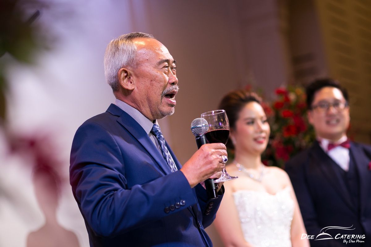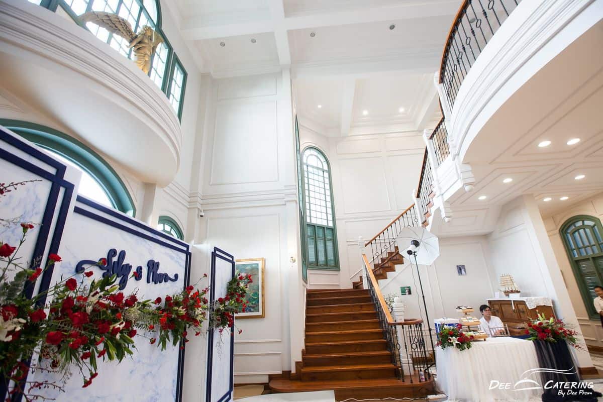 งานแต่งงานเป็นงานเลี้ยงที่คนให้ความสำคัญเป็นพิเศษเพราะเป็นงานที่จัดแค่ครั้งเดียวในชีวิต ไม่มีโอกาสแก้ตัว เจ้าภาพก็จะใส่ใจในรายละเอียด ของการจัดงาน มากเป็นพิเศษ งานนี้เป็นงานแต่งงานที่จัดขึ้นที่ วิลล่าเดอบัว สถานที่จัดงานแต่งงานแห่งใหม่ ที่เพิ่งเปิดให้บริการได้ไม่ถึง 1 ปี มีความเป็นไทยแบบโคโลเนียล สวยงาม และโอ่โถง เจ้าบ่าวเจ้าสาวของเราเลือก Theme Navy Burgundy ซึ่งเป็นคู่สีที่สวยแบบขรึมๆหรูๆ เข้ากับสถานที่อย่างพอดิบพอดี อาหารที่เลือกใช้เป็นอาหาร ค็อกเทล อร่อยๆ แขกทานกันอย่างสะดวก และสามารถเดินไปมาพูดคุยกันอย่างสะดวกสบาย