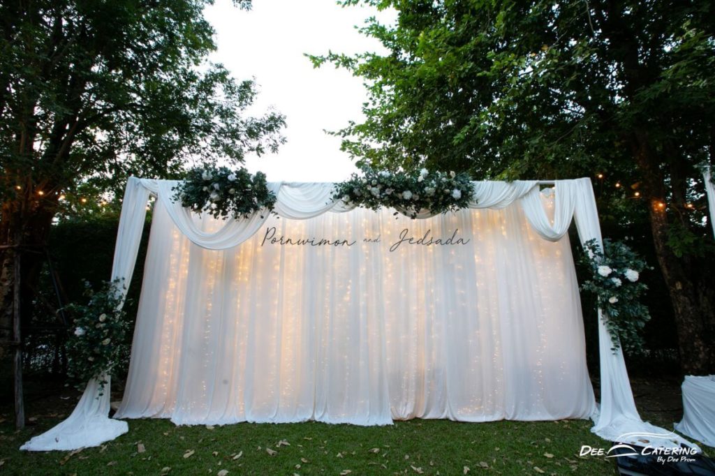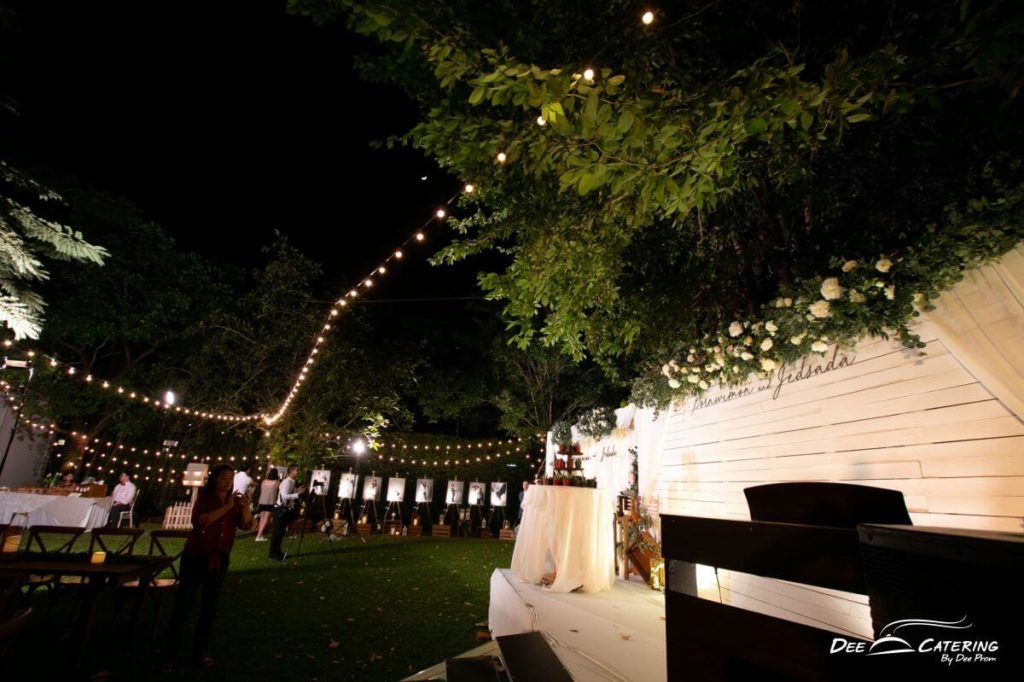บ่าวสาวที่ฝันอยากจัดงานแต่งในสวนคู่ไหนที่ได้ฤกษ์ตรงกับคิวว่างของ 66 Cottage จะเรียกว่าเป็นโชคชะตาก็ได้ อย่างบ่าวสาวคู่นี่ ดี เคเทอริ่ง คอนเฟิร์มว่าคาแรกเตอร์ของทั้งคู่กับ 66 Cottage ดูเข้ากันมากๆ ตั้งแต่คาแรกเตอร์ชิลล์ๆ สบายๆ ของทั้งคู่ และด้วยความที่เจ้าบ่าวทำงานอยู่ในแวงวงคนดนตรี ลิสต์เพลงในงานที่เจ้าบ่าวเลือกจึงลงตัวกับบรรยากาศของสถานที่ ส่วนอาหารจัดเลี้ยงที่เลือกเป็นบุฟเฟต์ ก็ดีไซน์รูปแบบงานให้ดูชิลล์และเหมาะกับการจัดงานแต่งในสวนด้วยการจัดเป็น Long Table เสริมโต๊ะสำหรับแขกที่อยากยืนฟังเพลงชิลล์ๆ ยิ่งได้ฝีมือการตกแต่งงานของทีม PhotoDiff ยิ่งทำให้ภาพรวมของงานแต่งงานในสวนนี้ดูโรแมนติก อบอุ่น และชิลล์มากๆ แบบที่บ่าวสาวต้องการเลยค่ะ